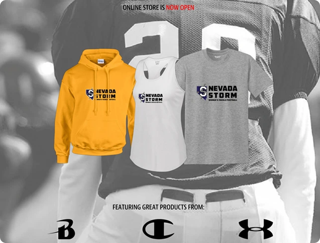 Official Nevada Storm merchandise helps power our WFA season. Wear the colors. Back professional women’s football in Northern Nevada.